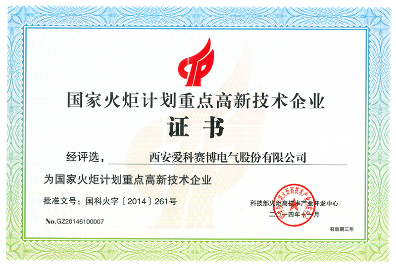 20124月,改制成立西安愛科賽博電氣股份有限公司。