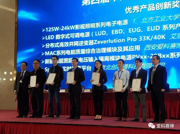 2017年11月4日,第四屆中國電源學會科學技術獎頒儀式在上海“中國電源學會第二十二屆學術年會”開幕式中舉行。西安愛科賽博電氣股份有限公司《MAC系列電能質量綜合治理模塊及其應用》項目榮獲“優秀產品創新獎”。