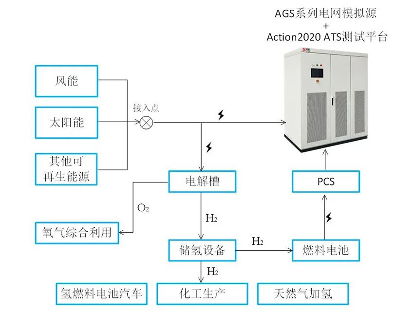 測(cè)試系統(tǒng)基于愛科賽博IDE Action2020 ATS測(cè)試平臺(tái),測(cè)試內(nèi)容根據(jù)中電(某)公司的測(cè)試需求深度定制,可自動(dòng)化完成《GB/T XXXXX-202X-氫儲(chǔ)能電站系統(tǒng)接入電網(wǎng)測(cè)試規(guī)范》中所有測(cè)試內(nèi)容。