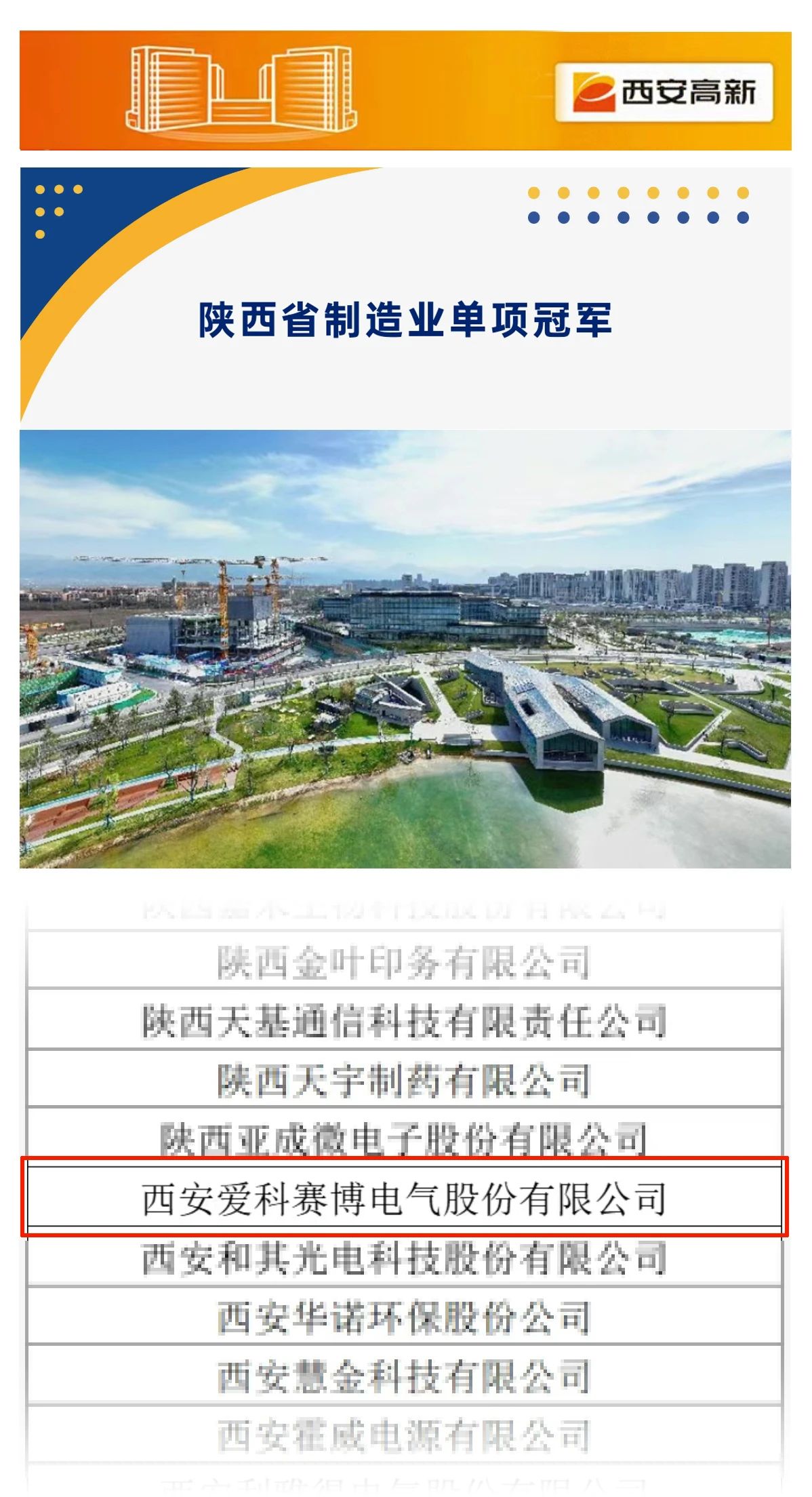 愛科賽博入選陜西省制造業(yè)單項(xiàng)冠軍培育庫(kù)