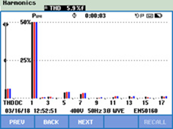 投入有源電力濾波器后,諧波電壓、諧波電流治理效果: